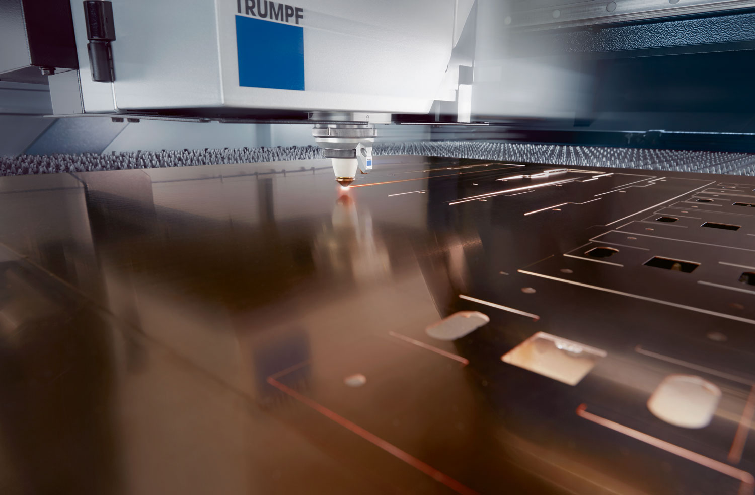 Schneiden von Buntmetallen wie Kupfer oder Messing. Auch können folierte Bleche präzis bearbeitet werden.
